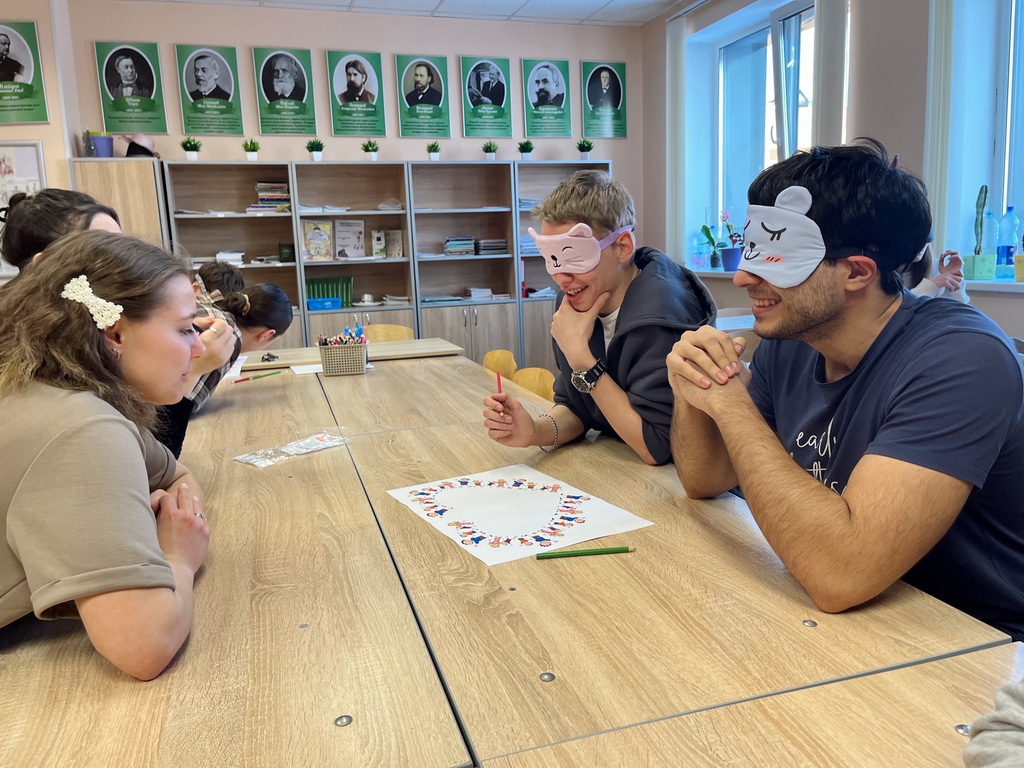 Наши студенты отправляются на практику, где им предстоит работать с особенными малышами, потому данное мероприятие стало отправной точкой и местом обсуждения тонких вопросов этики и морали. На занятии им предстояло самим оказаться в ситуации, когда они двигательно ограничены, прочувствовать на себе, насколько сложно выполнять простые задания, если, например, ограничить видимость. Ребята ещё раз убедились, что практика и работа с особенными детьми - это, в первую очередь, большая работа души и сердца.