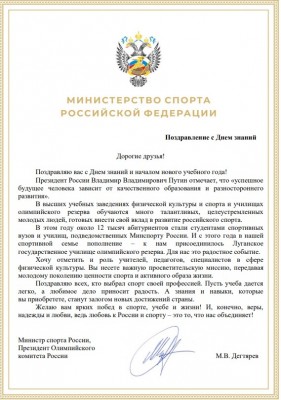 Поздравление С Днем знаний Министра спорта РФ